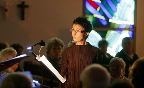 Die Lesung wurde unterstützt mit „Wiegenliedern“, die Solistinnen und Solisten sowie der Matthäuskammerchor vortrugen. Der krasse Gegensatz zu den lieblich-sanften Weisen ließ die in Wohnungen hausende Brutalität nur noch deutlicher zu Tage treten. Wie an den Gesichtern der Besucherinnen und Besucher abzulesen war, ließen die bestürzenden Schicksale niemanden kalt.
